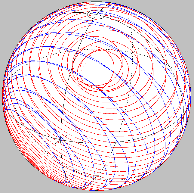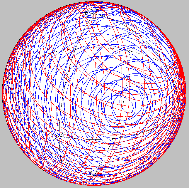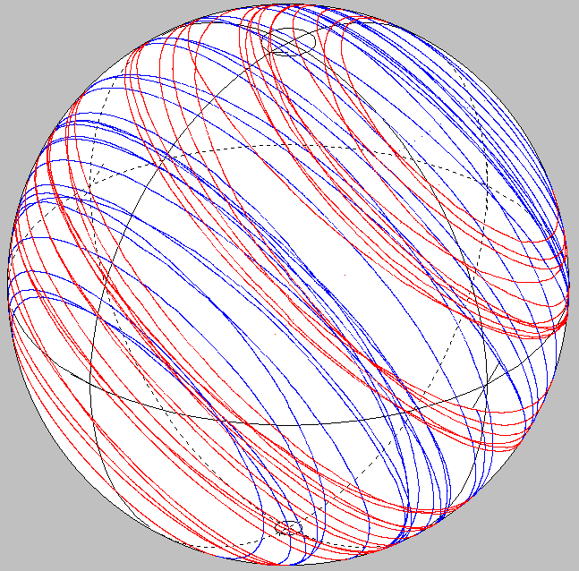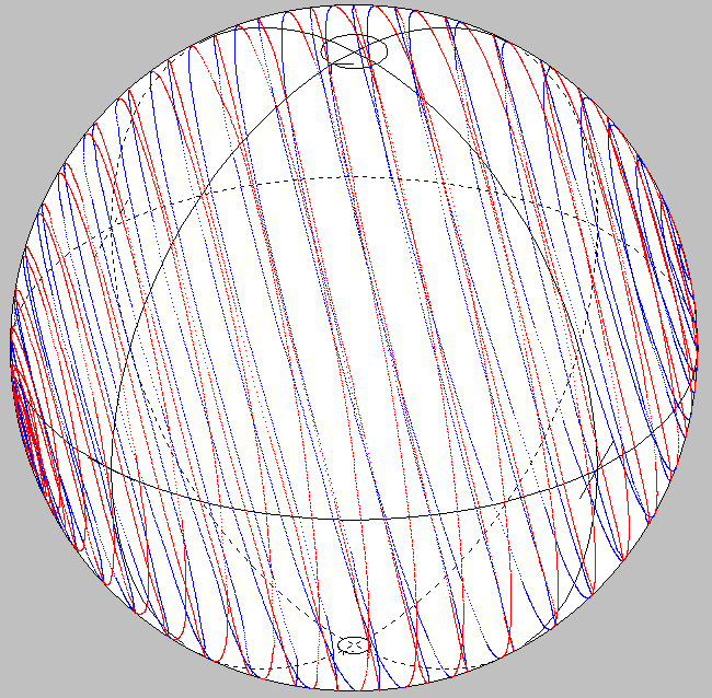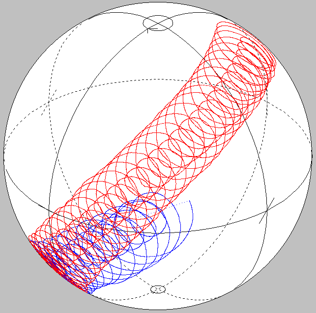Abhängig davon erzeugt die schnelle HWP Poincarékugelkreise in parallelen Ebenen, mit Radien zwischen 0 und 1, im arithmetischen Mittel π/4. In jeder Periode der HWP-Spannungen wird ein solcher Kreis zweimal durchlaufen. Bei Kreisradius 1, entsprechend rotierender linearer Polarisation auf dem Poincarékugeläquator, entsteht demnach in jeder elektrischen Periode eine Trajektorie der Länge 4π. Auf diesen Fall ist die von -10.000 bis