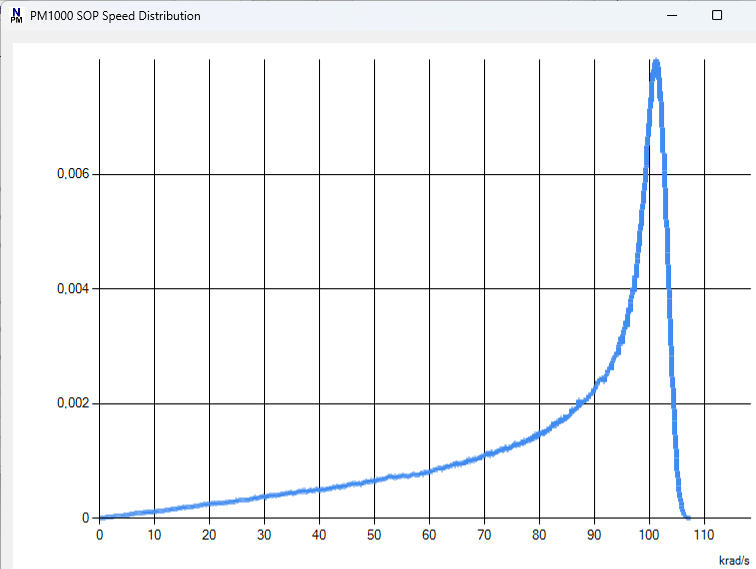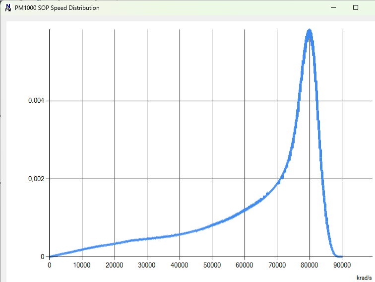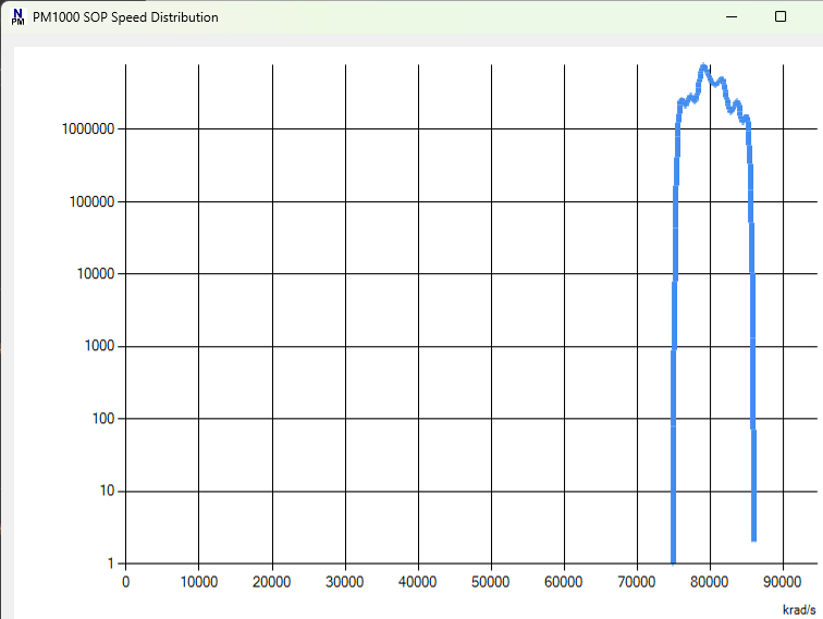 Semilogarithmic speed distribution generated by halfwave plate with locally linear polarization, running at 80 Mrad/s in EPS1000-80M | |