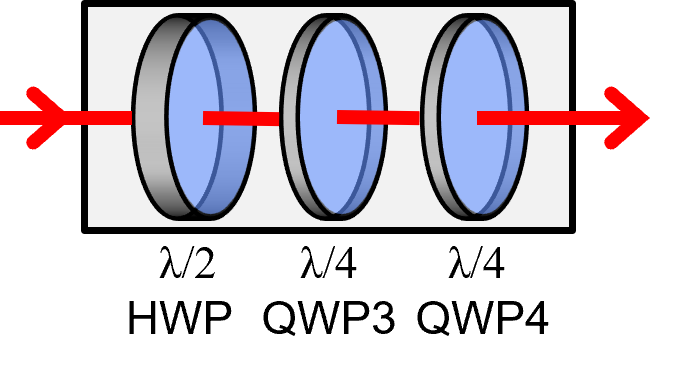 QWP0 to QWP2 scramble the unknown input polarization.